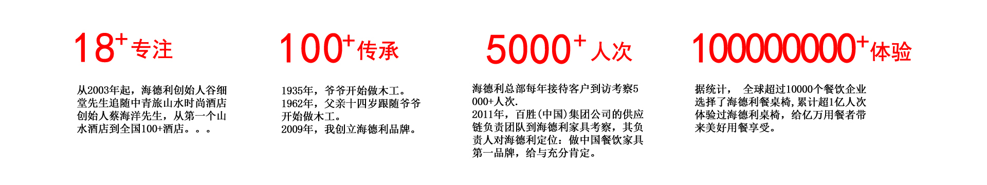 從歐美發達市場到東南亞乃至非洲等新興市場,超過100000個餐飲品牌及餐飲連鎖店,都在使用海德利家具,給您信心保證。
